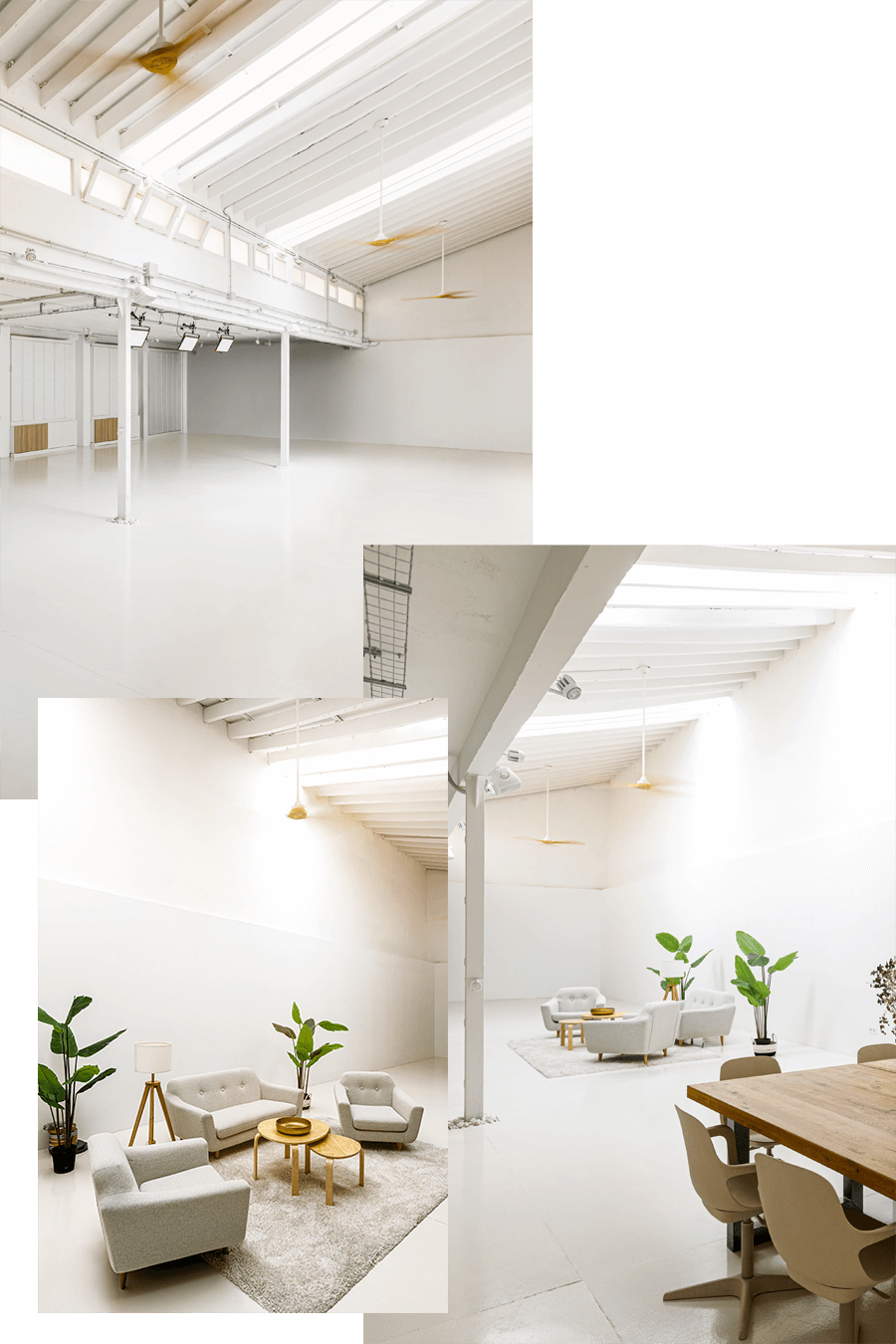 Con más de 200 m² diáfanos a pie de calle, combina una arquitectura industrial contemporánea con un ambiente luminoso y neutro que se transforma según las necesidades de cada evento.